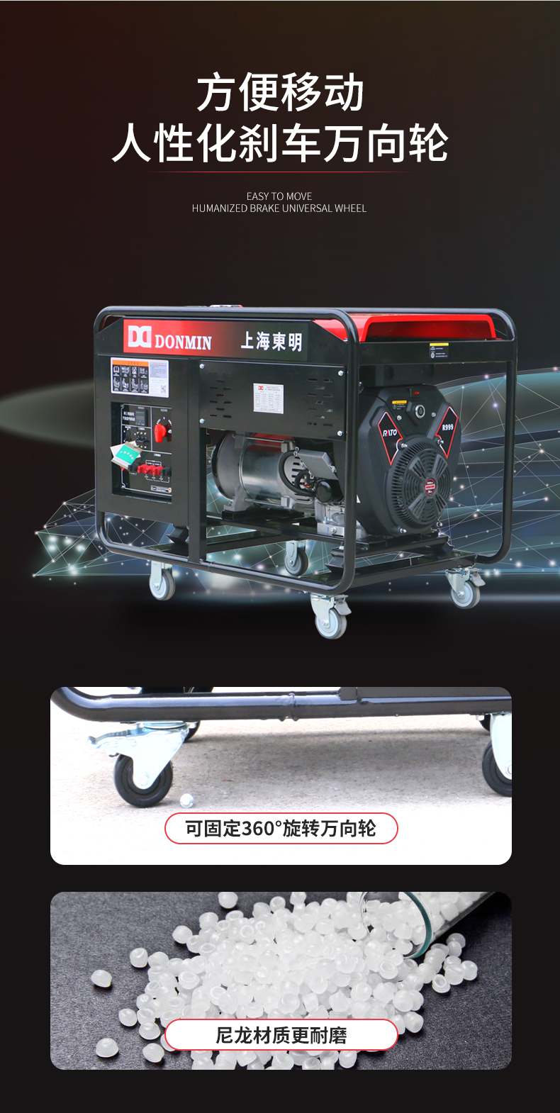 其實當(dāng)初采購這款發(fā)電機時,我們對比了不少品牌,最終被上海東明二十多年的源頭制造實力和產(chǎn)品適配性打動。這款DMDS18000CXD是15kw級汽油發(fā)電機,專為應(yīng)急搶修、戶外作業(yè)等場景設(shè)計,機身配備萬向移動輪,兩名工作人員輕輕一推就能移動,很快就能送達(dá)供電點位,無需費力搬運大型設(shè)備,為排澇爭取了寶貴時間。