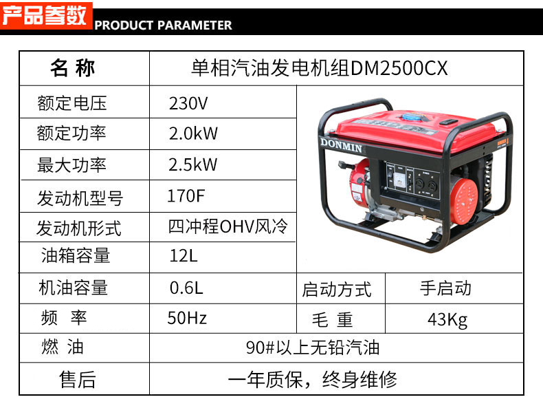 * 表示必填采購:單相2kW小型汽油發電機組DM2500CX