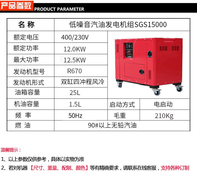 * 表示必填采購:三相12kW低噪音通信基站維護用汽油發(fā)電油機 SGS15000