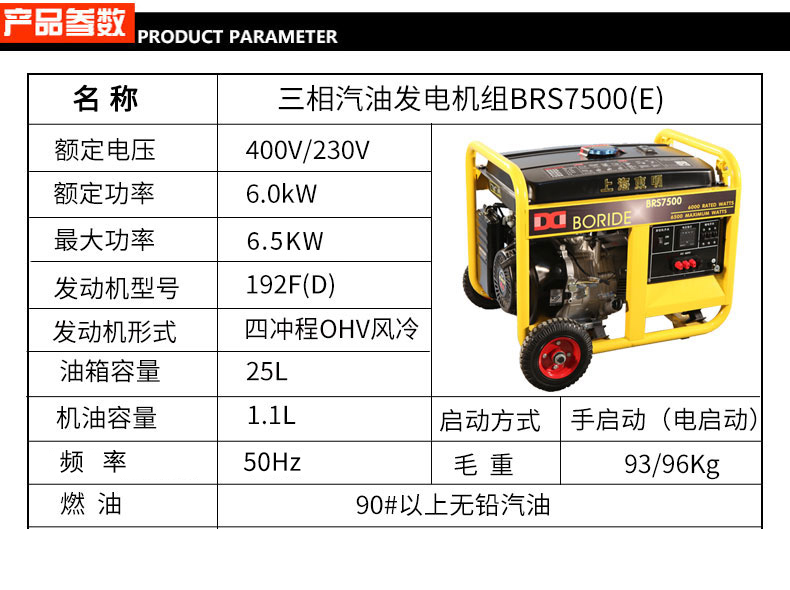 三相 6kW小型汽油發電機組 BRS7500(E)